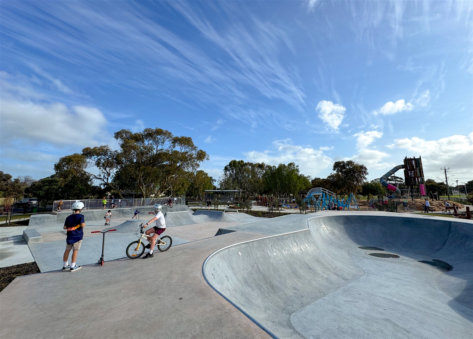The upgrades to the space included a rebuild of the skate park, a new half court, and a number of new play elements such as a flying fox and slide tower.