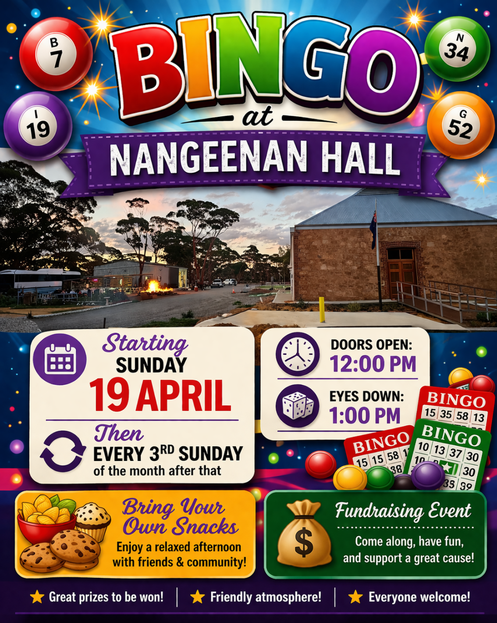 Bingo starts 19 April then every 3rd Sunday, doors open 12:00 eyes down 1pm. Come and enjoy the day filled with games. Bring a picnic basket.