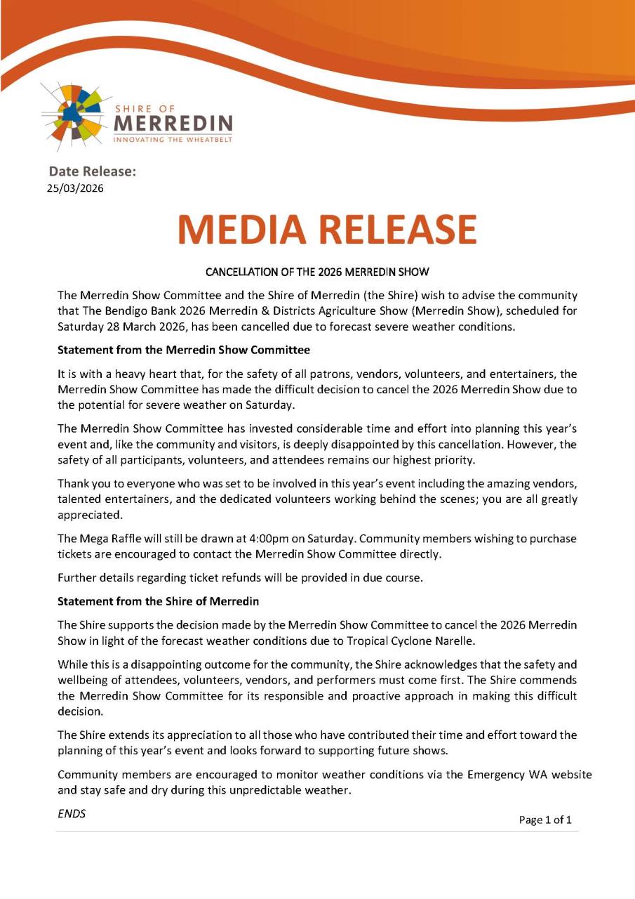 Organisation: Merredin & Districts Agricultural Show Committee